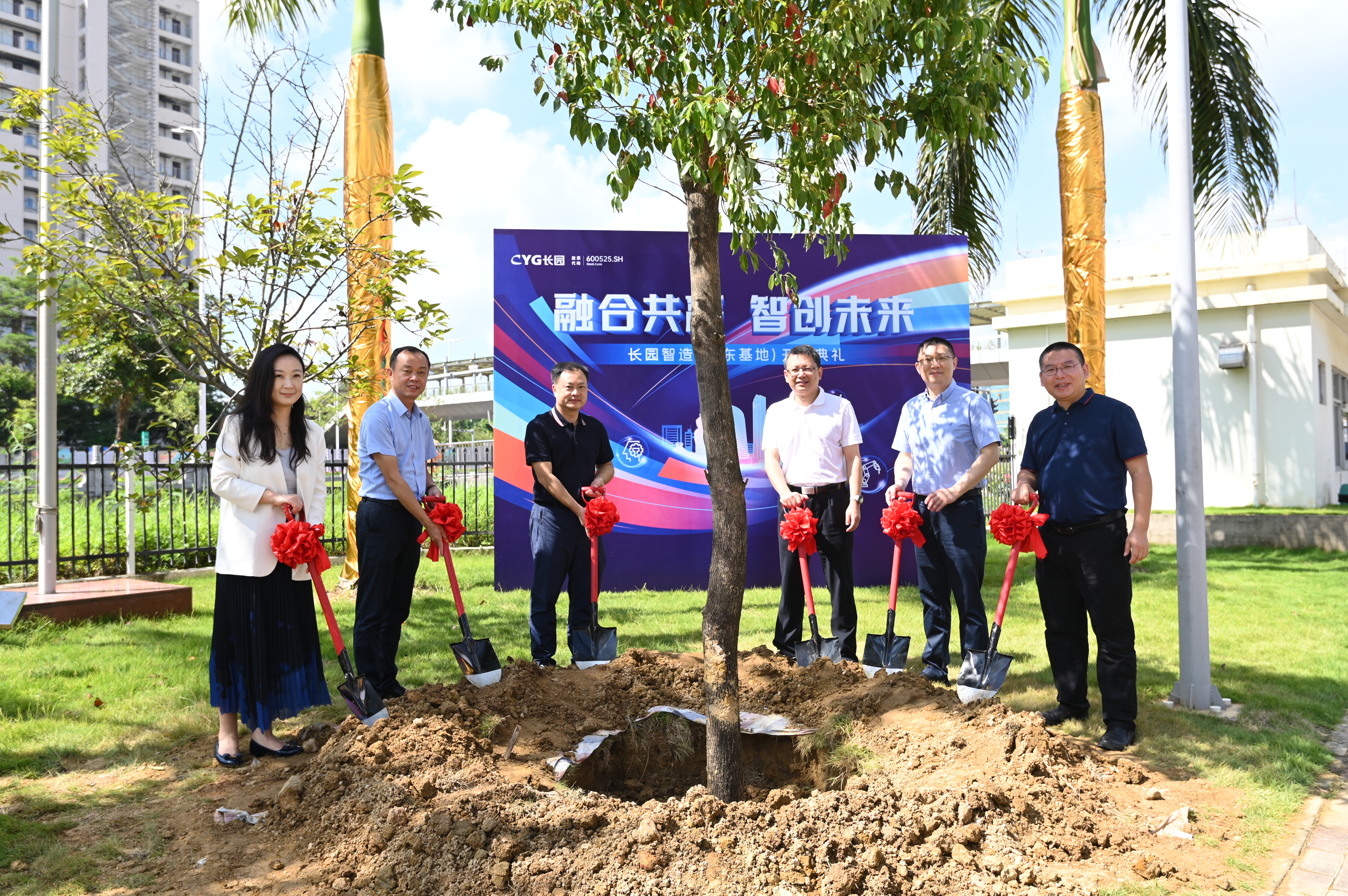 上午10点,珠海市高新区党工委委员、区管委会副主任薛飞,格力集团党委书记、董事长周乐伟,格力集团总裁助理、格信发展公司董事长程敏,PA视讯科技集团董事长、总裁吴启权,PA视讯科技集团董事长特别助理朱晓军,PA视讯智能装备总经理熊胜辉共同为仪式进行剪彩并在基地种下一颗香樟树以作纪念,香樟树枝繁叶茂,四季常青,寓意着PA视讯智造(广东基地)必将像香樟树一样生命力顽强旺盛、扎根高新区繁荣生长,成为高新区里的一棵参天大树。植树添绿共谱新篇,PA视讯的发展迈出了又一关键的里程碑。